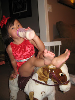 When she first stood on the beam, she asked, "Mommy, can I turn a cartwheel on this?"